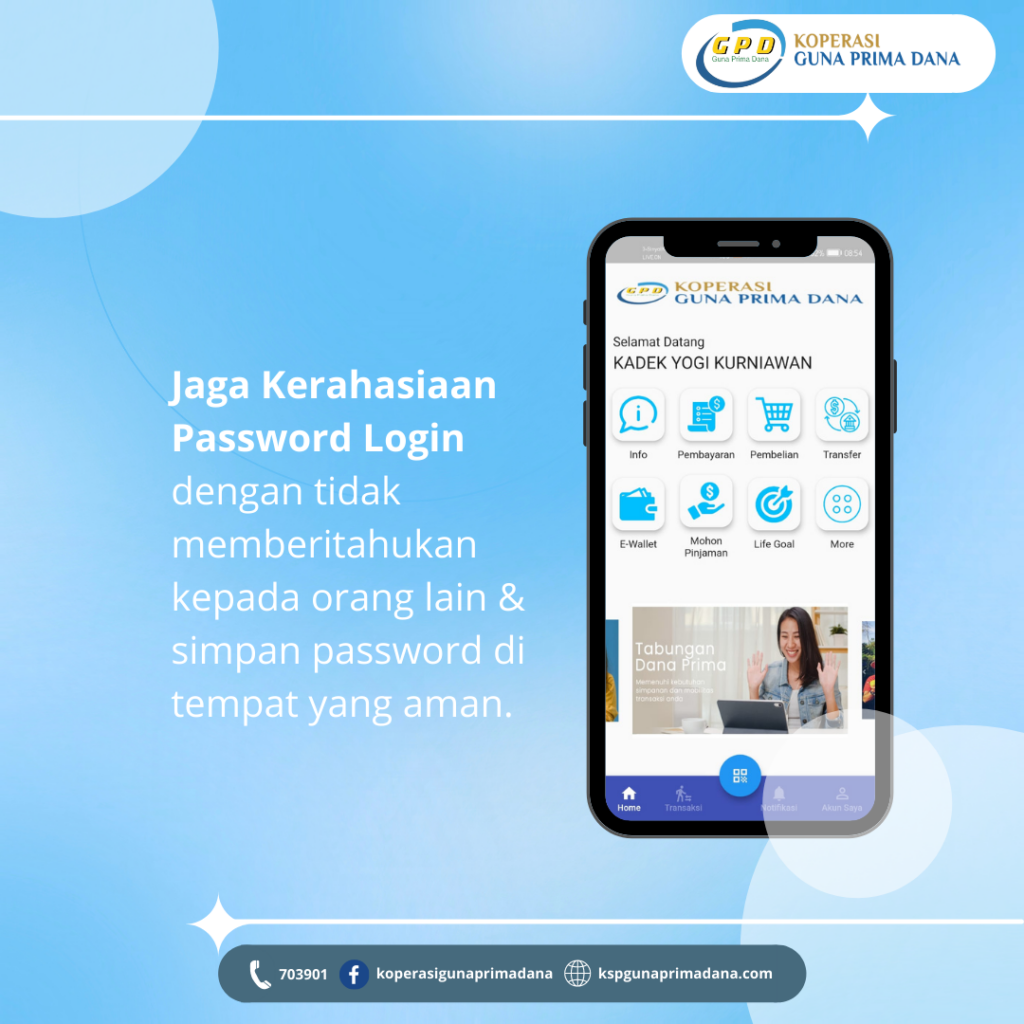 - Jangan memberitahukan PIN atau sebagian PIN Mobile Banking anda kepada siapapun, termasuk orang terdekat anda. Petugas Koperasi tidak pernah meminta dan menanyakan PIN Mobile Banking kepada penggunanya.